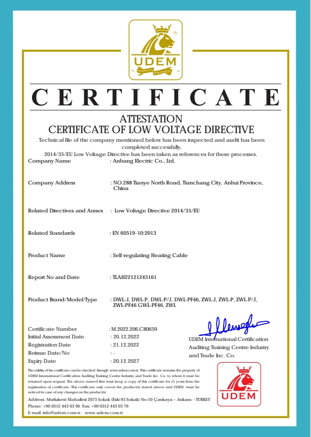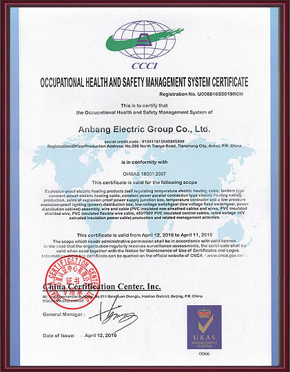 安邦電氣股份有限公司,總部位于北京市長安街,成立于2004年,注冊資金10088萬。安徽生產基地占地面積63000平方米,擁有66套各類生產線,其中進口生產線6套。國家高新技術型企業(yè),滁州市市長質量獎企業(yè),專精特新“小巨人”企業(yè),擁有國家知識產權局授權的45項專利,其中發(fā)明專利28項 , 主筆《太陽能熱利用自限溫電熱帶安裝規(guī)范》行業(yè)標準,參編《自限溫電伴熱帶》國家標準、《工業(yè)和商業(yè)用電阻式伴熱系統》國家標準、《太陽能熱利用自限溫電熱帶》行業(yè)標準、《爆炸性環(huán)境 電阻式伴熱器》國家標準等7項國家標準。企業(yè)通過UL認證,國家強制性 CCC產品認證,ISO9001質量管理體系認證,ISO14001環(huán)境管理體系認證,ISO45001職業(yè)健康安全管理體系認證,Q/SHS0001.1健康、安全與環(huán)境管理體系認證,歐盟防爆ATEX認證,歐盟CE認證,RoHS認證,俄羅斯海關聯盟認證,國家防爆電氣CCC證書。產品系列:集膚伴熱系統、電伴熱系統、電加熱器、電地暖系統、集儀器儀表、電線電纜、高低壓配電柜(箱)、電纜橋架、閥門管件等等設計、制造、銷售。產品應用于航天航空、軍工、石油、石化、天然氣、機場、化工、鋼鐵、隧道、消防、養(yǎng)殖、融雪化冰、室內供暖、國家電網及眾多電廠等等國家重點工程。出口美國、英國、德國、俄羅斯、韓國、日本、哈薩克斯坦、烏克蘭、伊朗等眾多國家。